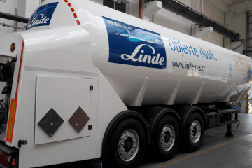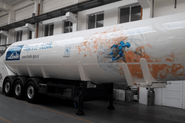 Pro našeho klienta zajišťujeme velkoformátové polepy cisteren. Vzhledem k vysokým požadavkům na urychlené dokončení polepu, aby byla cisterna co nejdříve zpět v provozu, jsme připraveni vyjít vstříc klientovi co se týče místa realizace i termínu polepu.